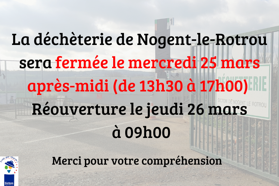 Fermetures exceptionnelles de la déchèterie de Nogent-Le-Rotrou les 20 et 25 mars 2026
