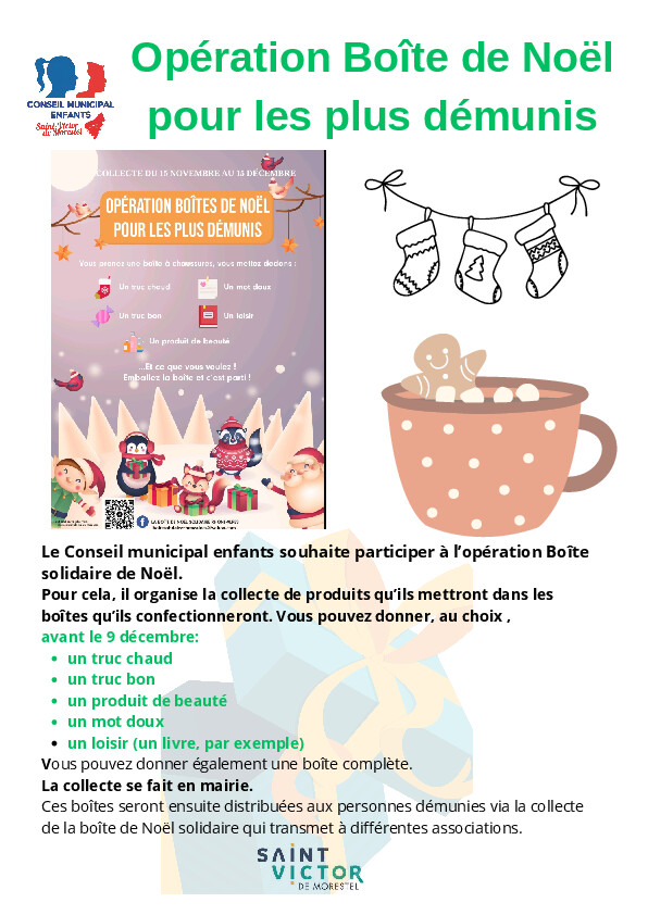 ➡️ Déposer en mairie ce que vous souhaitez : un truc chaud 🥶, un truc bon 🤩, des produits de beauté, un petit mot qui réchauffe le coeur 😍, un livre, etc... ou une boîte complète 😊