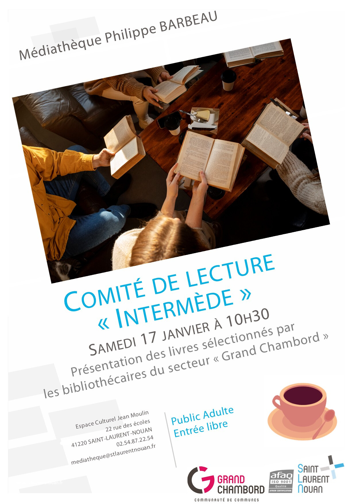 au 02-54-87-22-54 ou mediatheque@stlaurentnouan.fr
