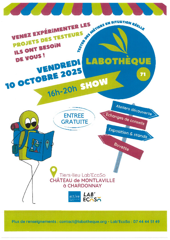 Le Labothèque est une expérience permettant à des personnes en recherche d’orientation, en reconversion ou en création d’activité de tester des métiers & projets sur le site du château de Montlaville.