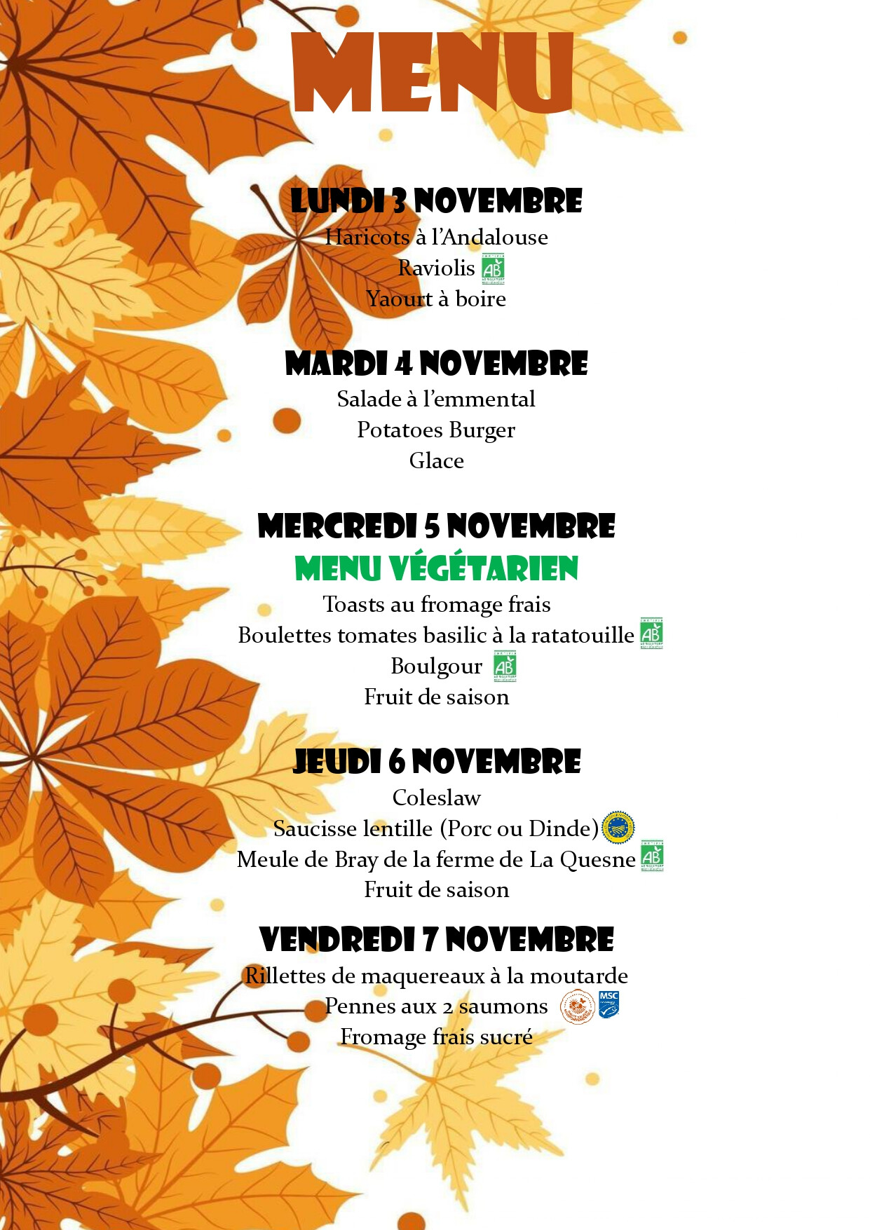 Voici le menu du restaurant scolaire
