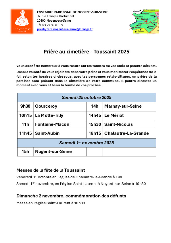 Un prêtre de la paroisse sera présent dans le cimetière de votre commune.
