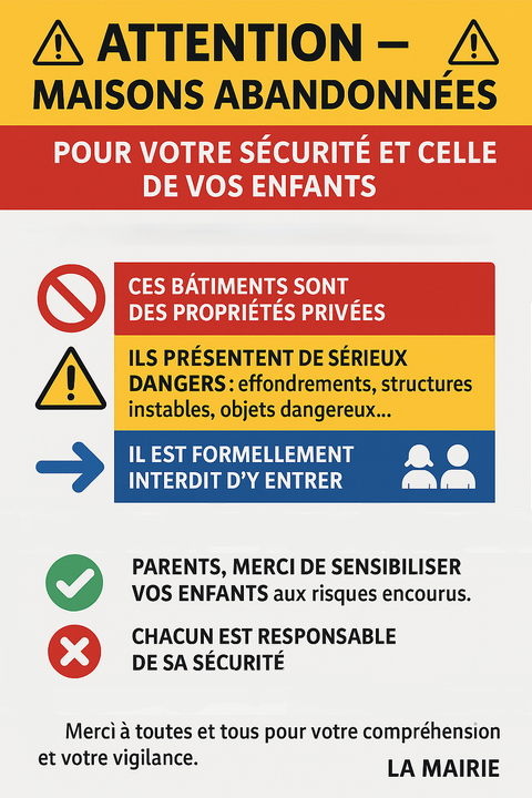 La mairie a été récemment alertée de la présence d’enfants et d’adolescents entrant dans certaines maisons abandonnées de la commune.