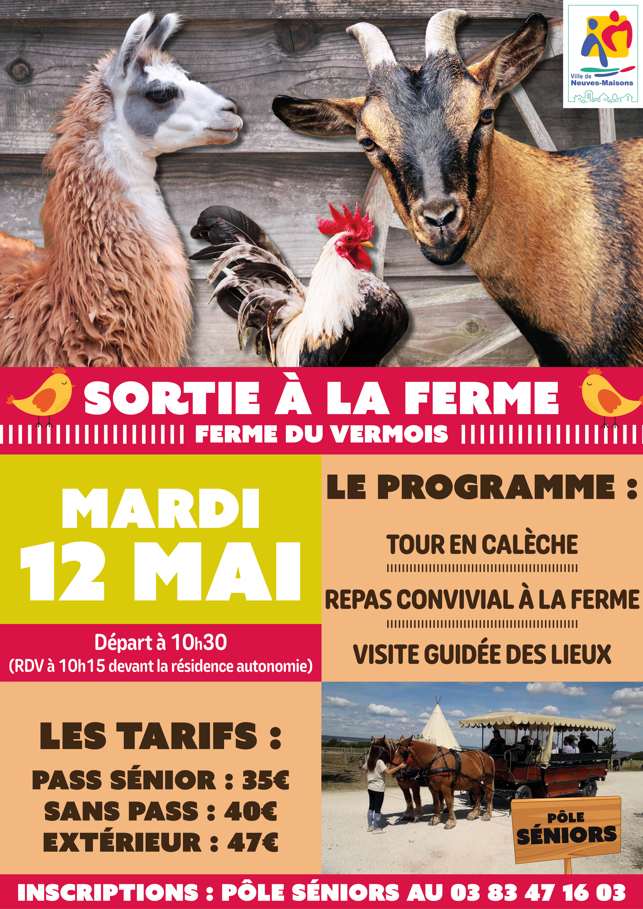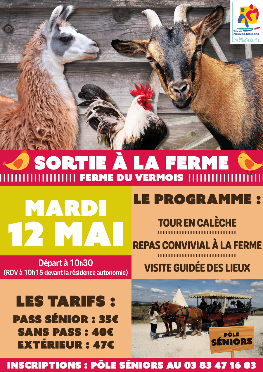 Le pôle seniors de Neuves-Maisons vous propose une sortie à la ferme du Vermois.
