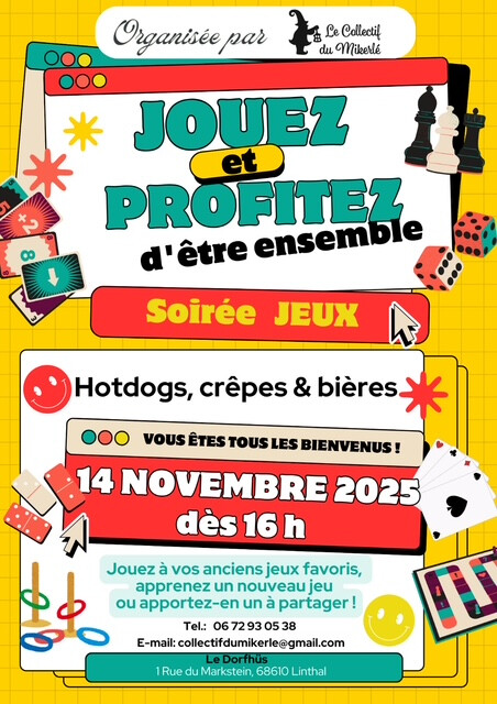 Vendredi 14 novembre aura lieu la 3ème soirée jeux au Dorfhüs de Linthal.
