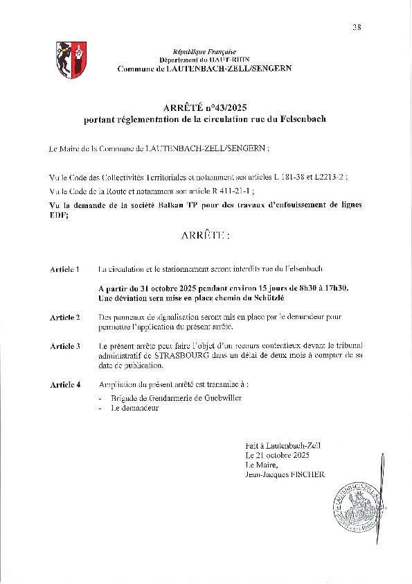 - Pour les communes de Lautenbach, Lautenbach-Zell et Linthal, la collecte des ordures ménagères a lieu mercredi 12 novembre.