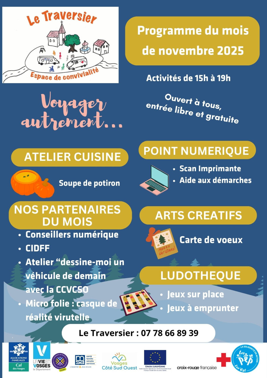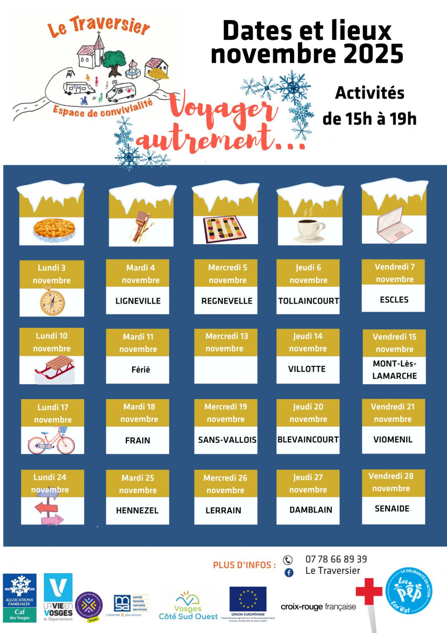 ✏️ jeudi 6 novembre, 16h > 17h, Le Traversier, salle polyvalente de REGNÉVELLE