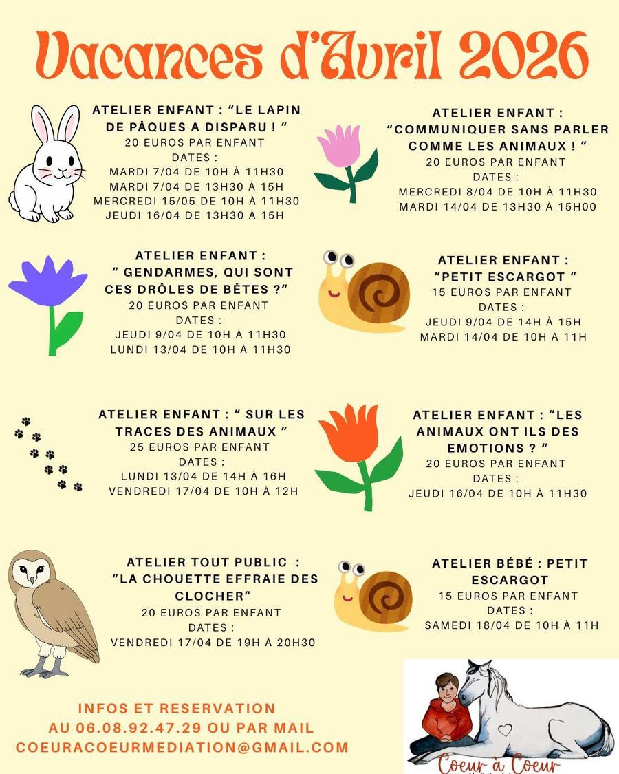 des ateliers autour des animaux, pour tous les âges et toutes les envies!