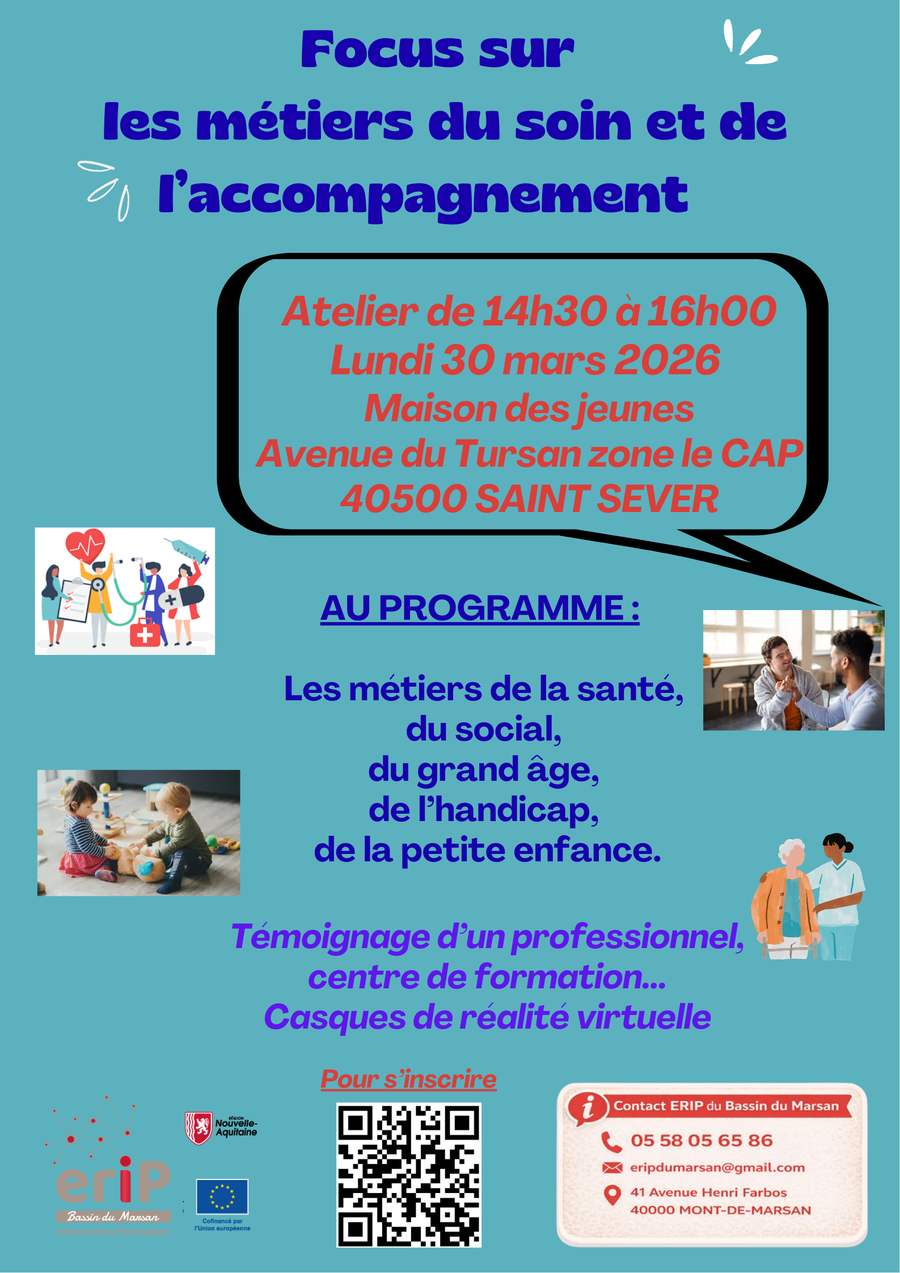 Dans le cadre de la Semaine du soin et de l’accompagnement, l’ ERIP du Marsan organise un atelier de découverte des métiers à Saint-Sever.