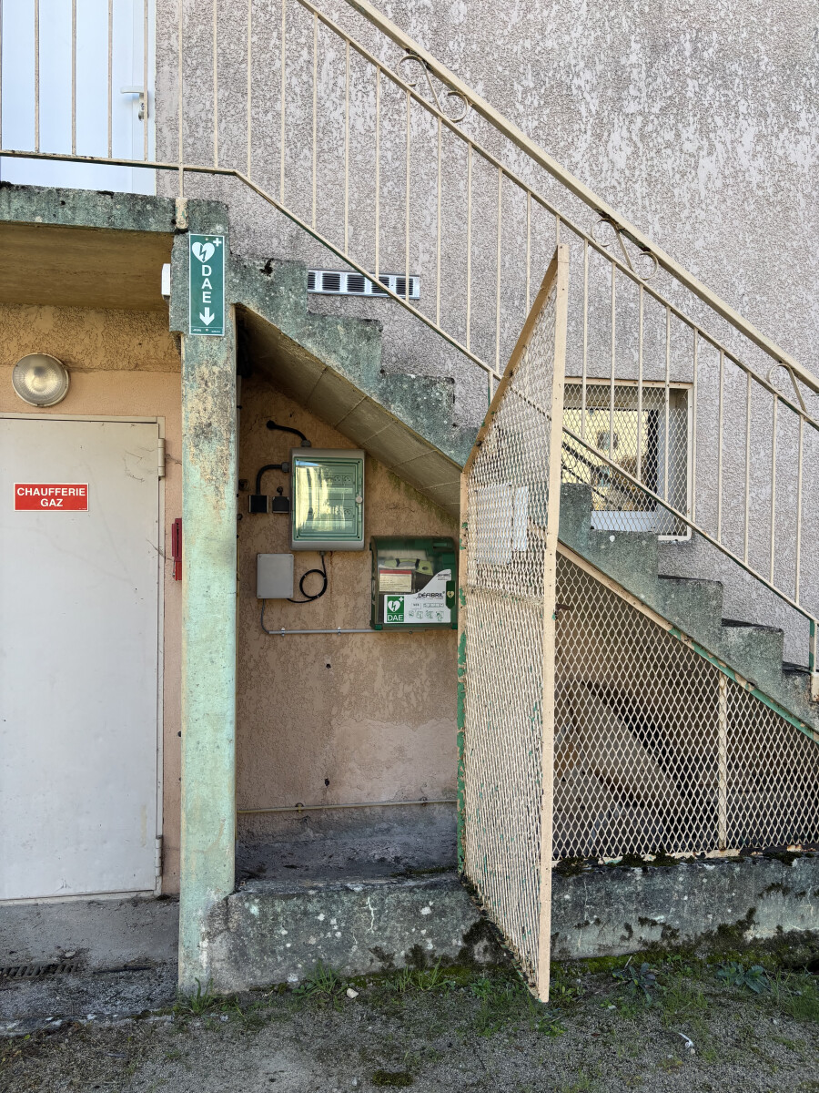 DEFIBRILATEUR INSTALLE SOUS LES ESCALIERS DE LA SALLE DES FETES