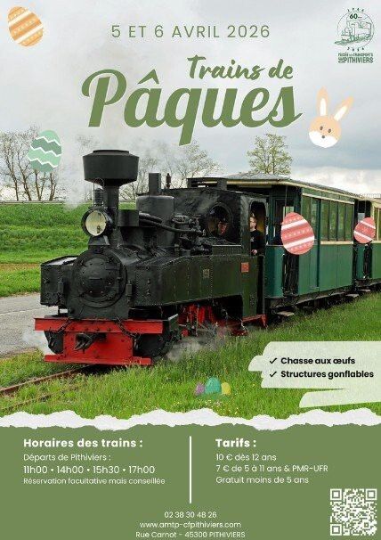 De 10h30 à 18h30 : Trains de Pâques, participez à la chasse aux œufs dans le parc de Bellebat où des structures gonflables attendent les plus jeunes.