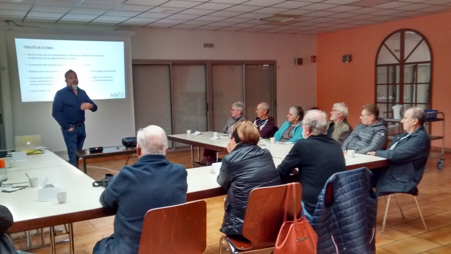 c'est autour de l’animateur Jérôme que se sont retrouvés 12 Chavelotais pour suivre un stage de remise à niveau des connaissances en matière de sécurité routière.