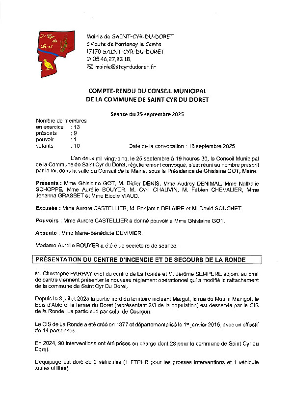 Prochaine permanence à la mairie de Saint Cyr du Doret le 2 octobre matin.