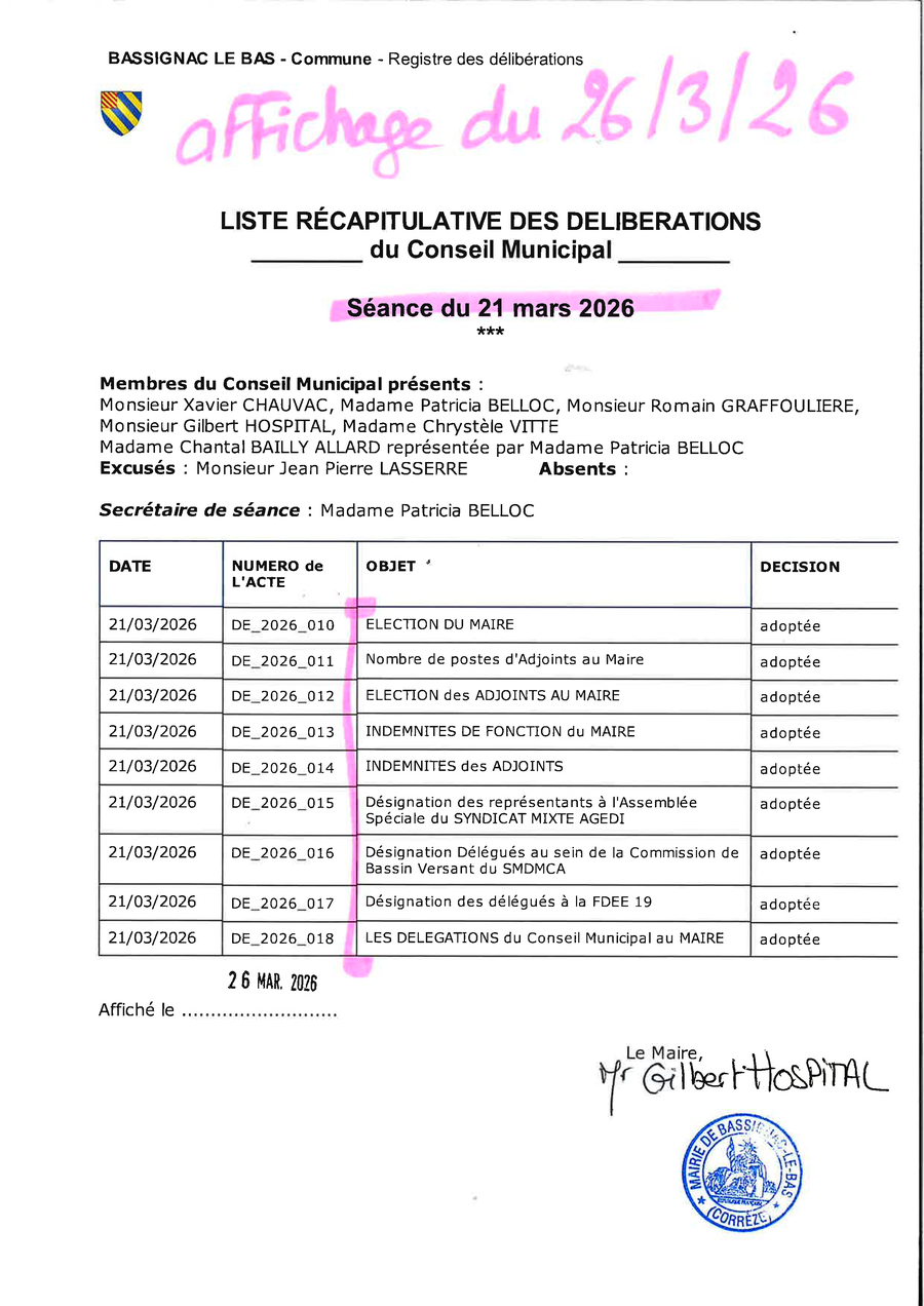 Le procès verbal sera prochainement disponible sur le site internet de la commune : ICI