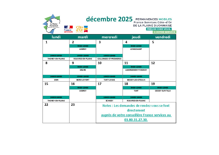 A compter du lundi 8 Décembre 2025 et tous les lundis matin, la France services de la Plaine Dijonnaise accueillera un nouveau partenaire au sein de ses locaux.