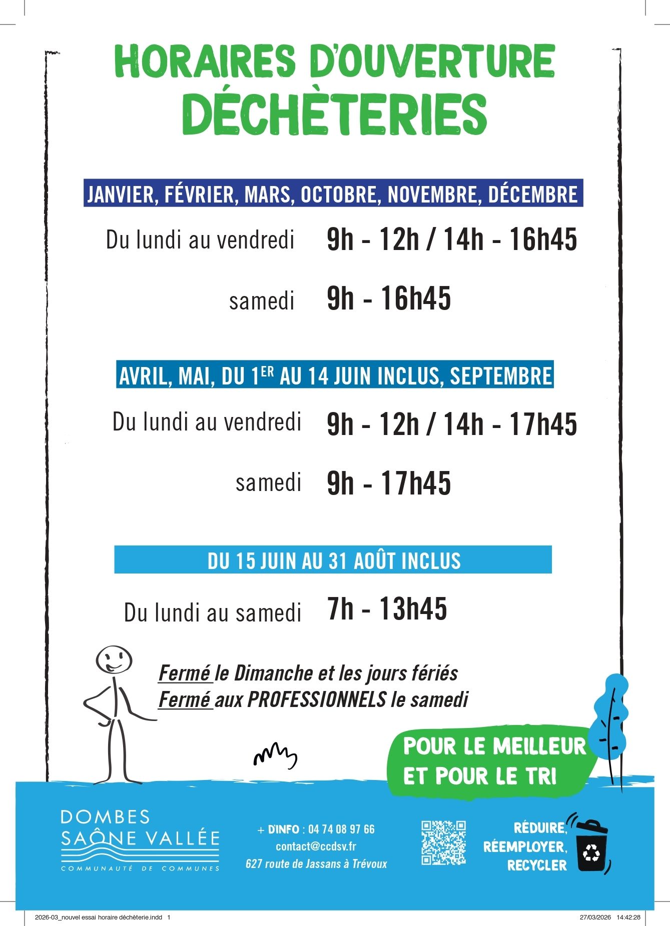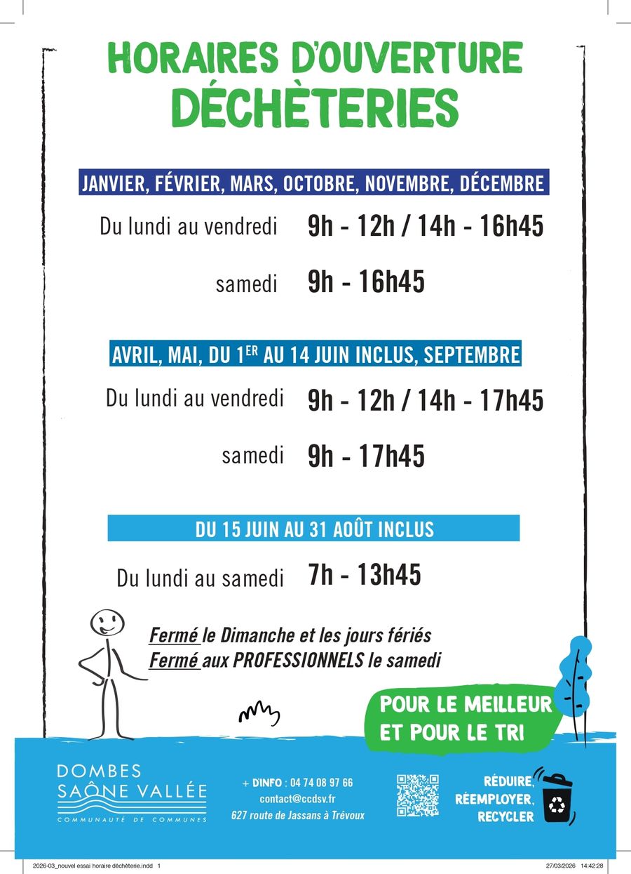 Plus d'informations sur : https://dechets.ccdsv.fr/decheterie/horaires-et-localisation/