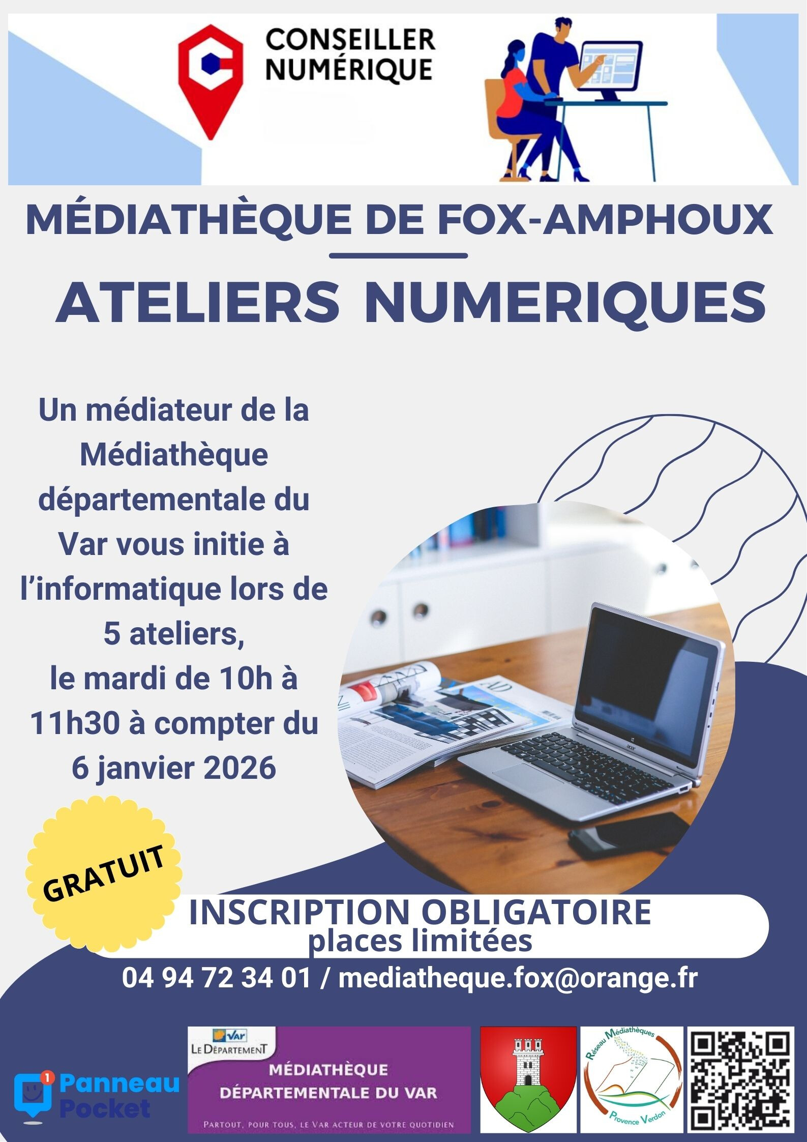 Inscription obligatoire: 0494723401 ou mediatheque.fox@orange.fr