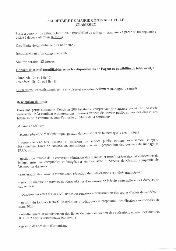 Le candidat peut choisir son département d'affectation, concours ouvert jusqu'au 22 octobre 2025.