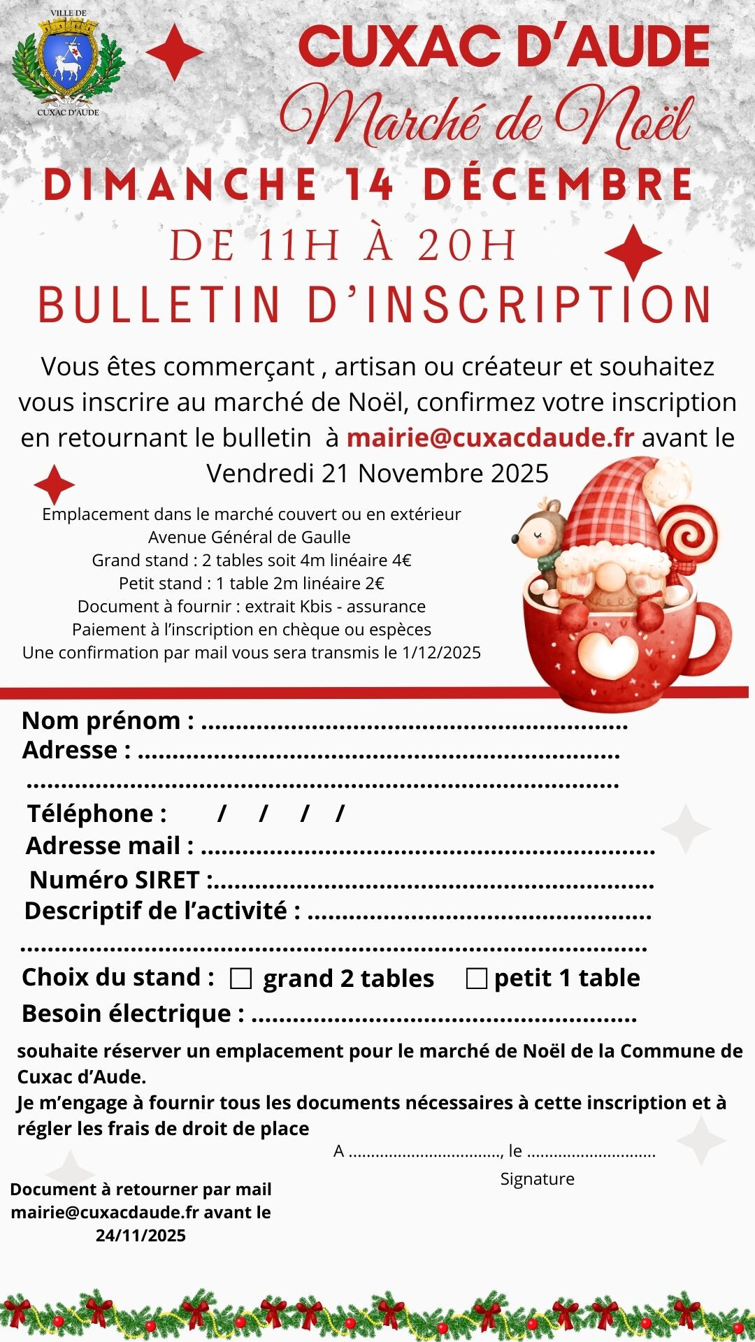 Informations, renseignements sur l'affiche ci-jointe.