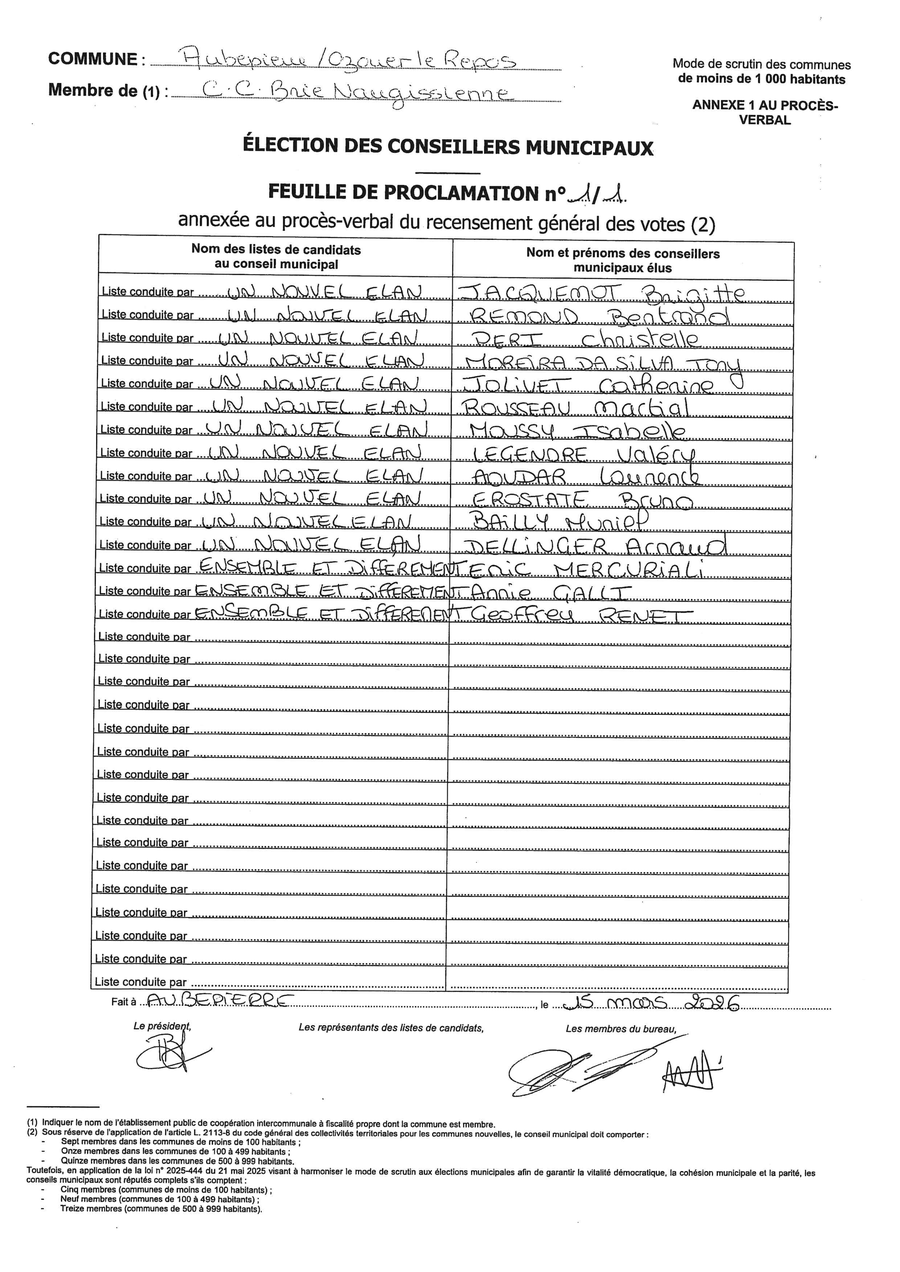 d’une nouvelle borne à Aubepierre et une nouvelle borne de recharge à Ozouer le Repos