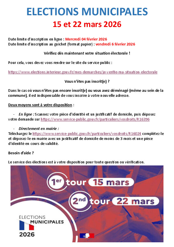 👉 Date limite pour s’inscrire sur les listes électorales :