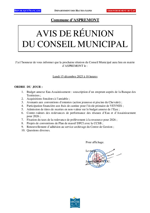 Le territoire d'ASPREMONT est concerné par cette obligation.