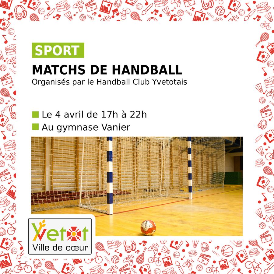 🤾♂️ Samedi 4 avril 2026 de 17h à 22h : matchs de handball au gymnase Vanier