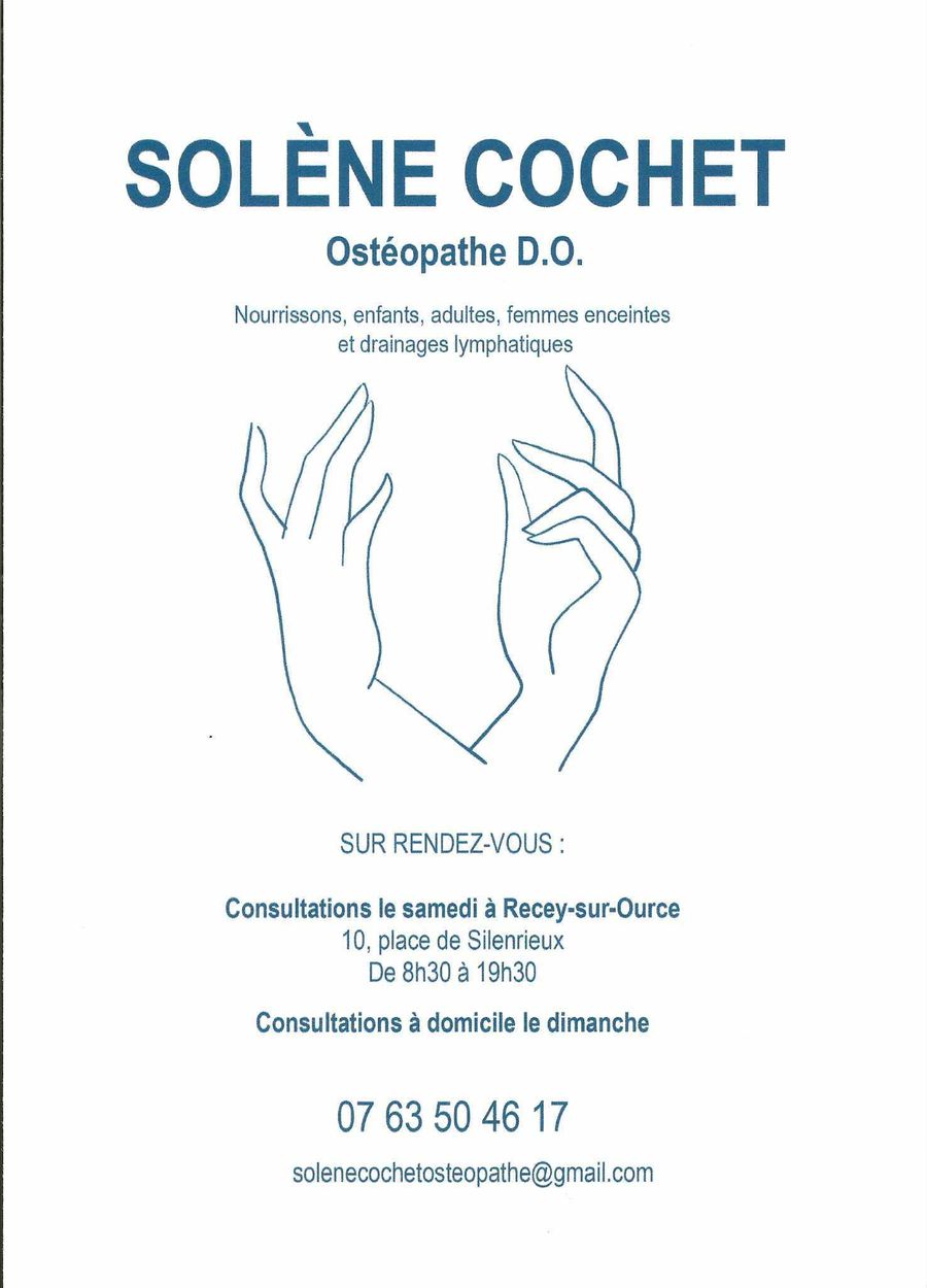 À partir du 7 mars 2026, Solène Cochet pratiquera à Recey-sur-Ource le samedi et à domicile le dimanche.