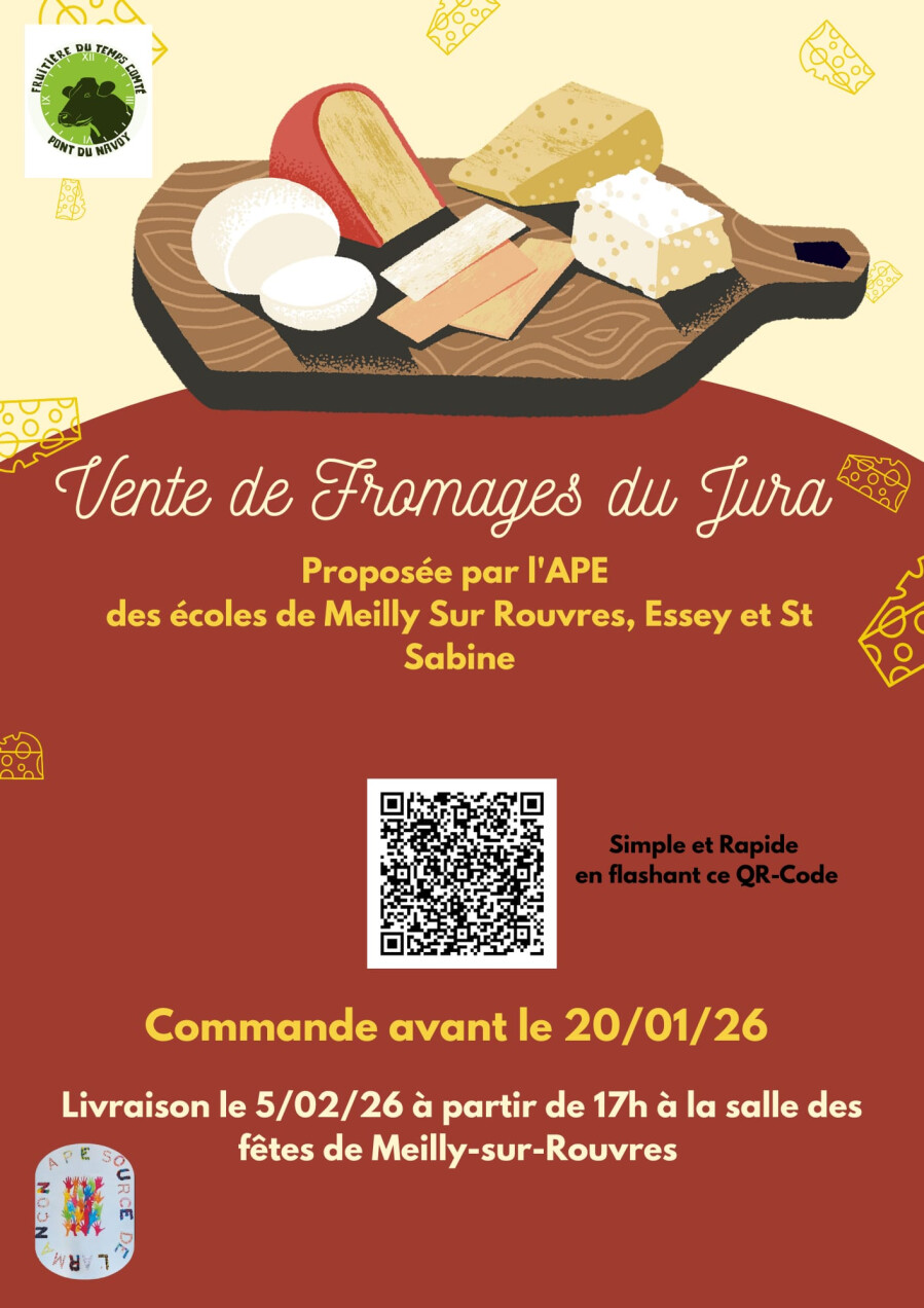 🫕 L'hiver est bien installé et la période scolaire d'ici aux vacances d'hiver est courte alors nous ne perdons pas de temps et vous proposons d'ores et déjà notre traditionnelle vente de fromages du Jura. 😉