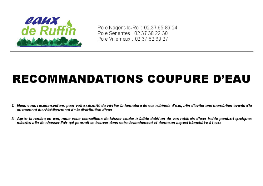 Afin de limiter au maximum la coupure d'eau générale, nous vous demandons de limiter votre consommation d'eau potable autant que possible durant cette période.