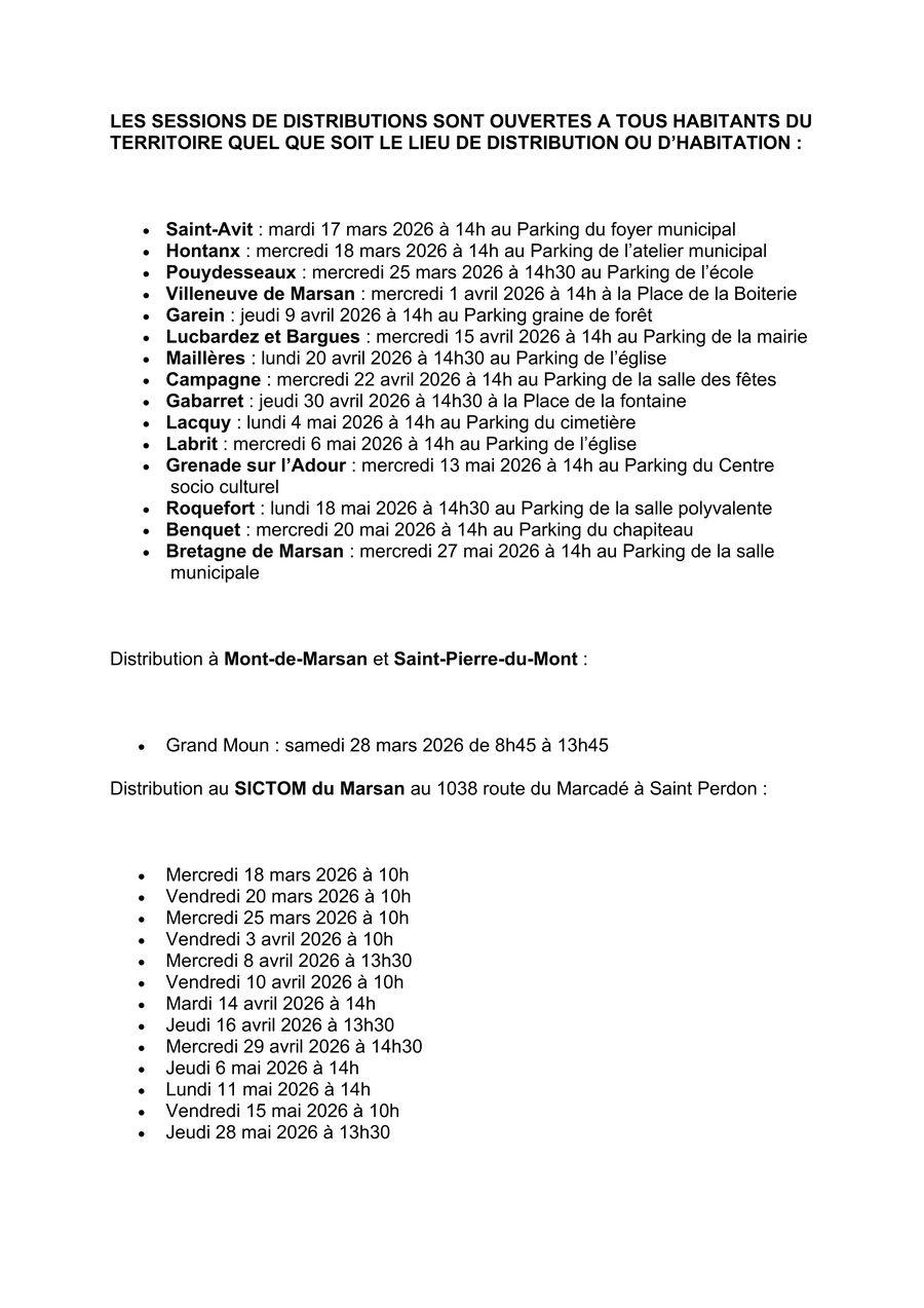 Le nombre de places étant limité, vous pourrez faire votre inscription directe sur le site internet du SICTOM du Marsan.