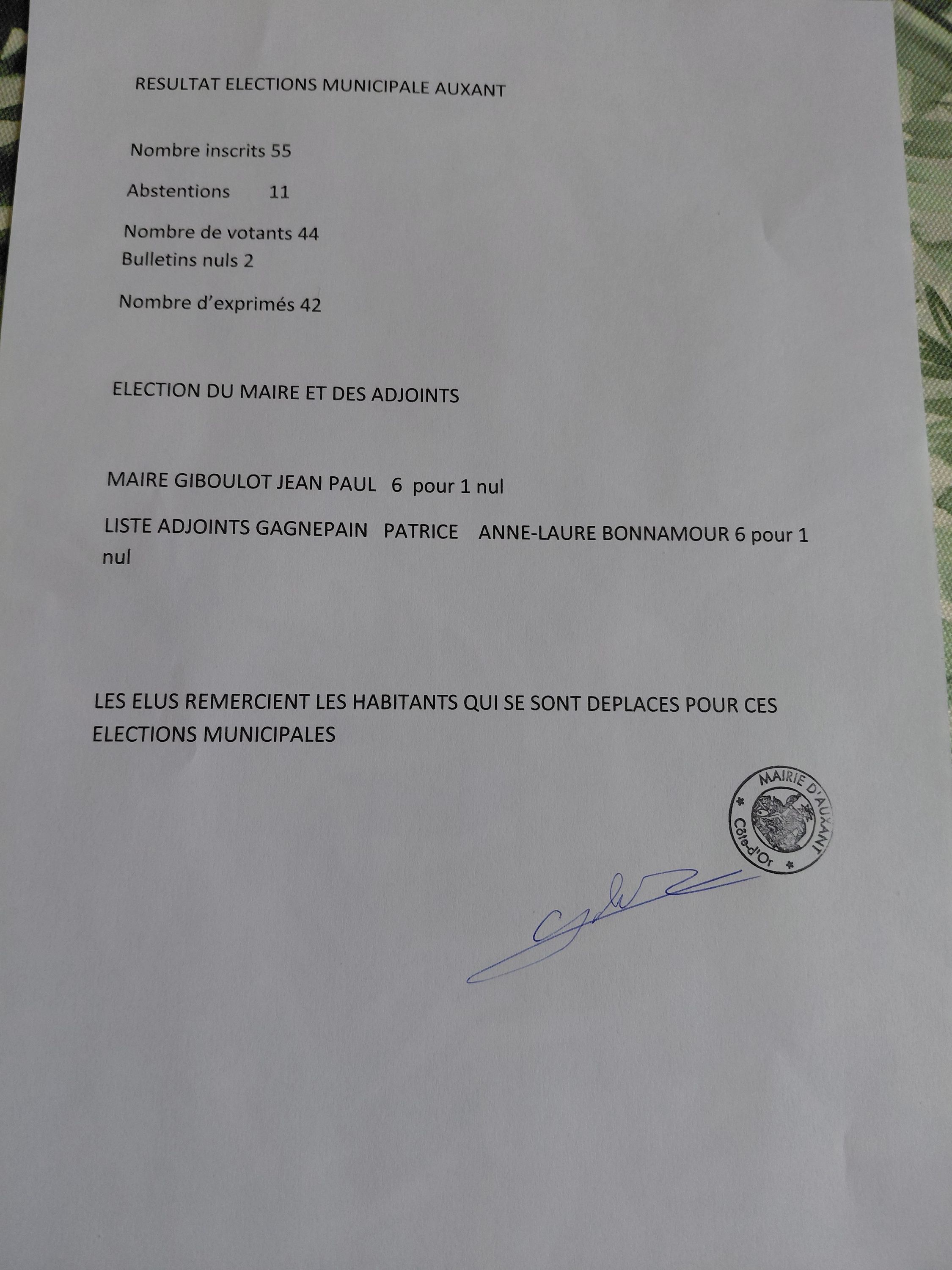 Les élus remercient les électeurs qui se sont déplacés pour ce vote 80% de participation. Nous defendrons les intérêts de notre village