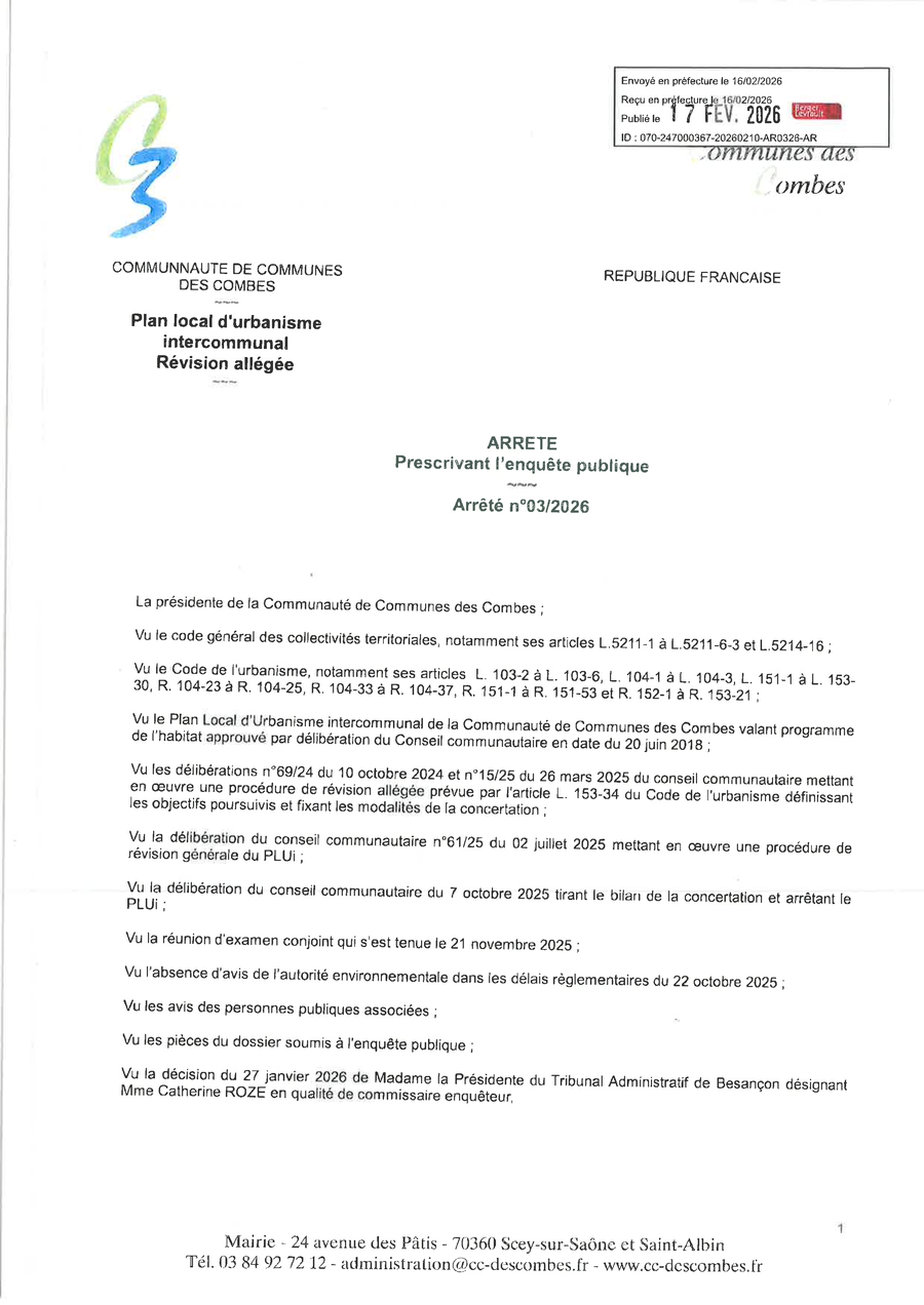 Vous trouverez ci-dessous l'arrêté de lancement de l 'enquête publique