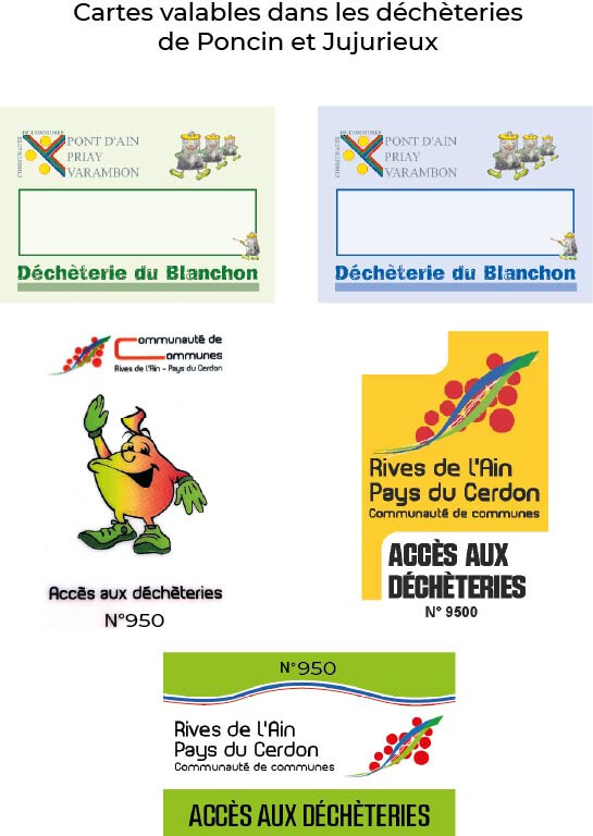 Habitants du territoire Rives de l’Ain - Pays du Cerdon, pour accéder aux déchèteries de Poncin et Jujurieux, plusieurs modèles de cartes sont acceptés