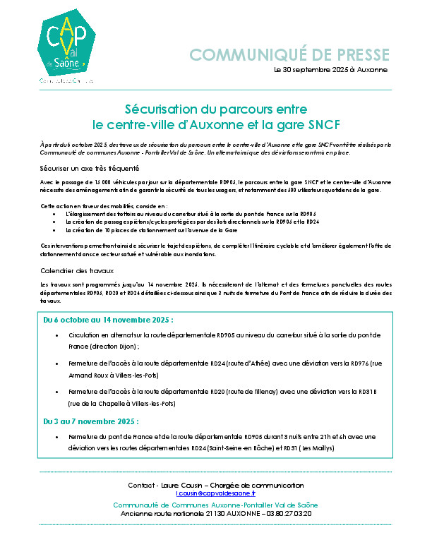 Avec le passage de 15 000 véhicules par jour sur la départementale RD905, le parcours entre la gare SNCF et le centre-ville d’Auxonne nécessite des aménagements afin de garantir la sécurité de tous les usagers.