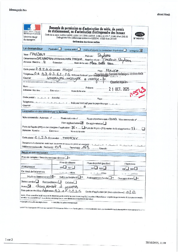DEMANDE AVIS SUR UNE PERMISSION DE VOIRIE - ENRGT n°543 - RD109 chargement grumes