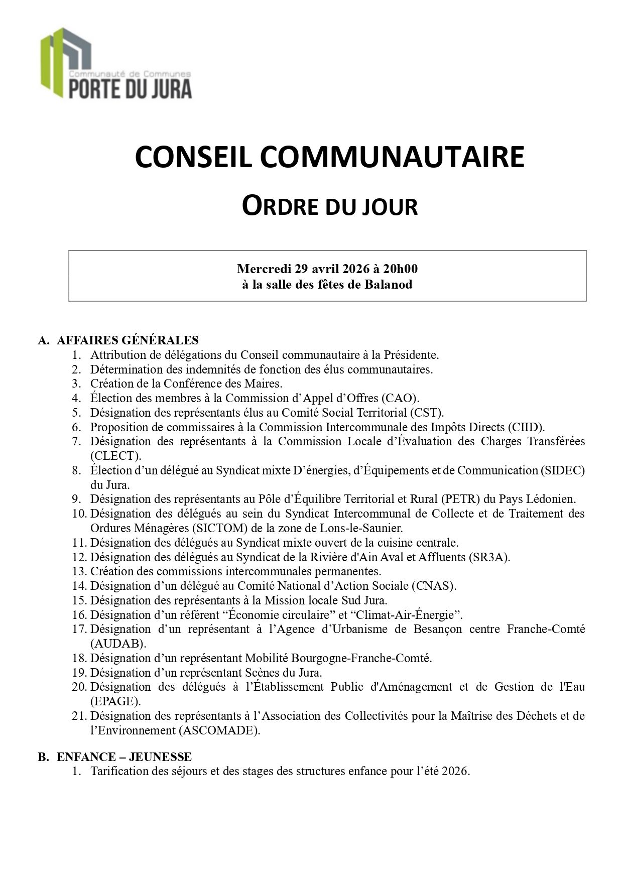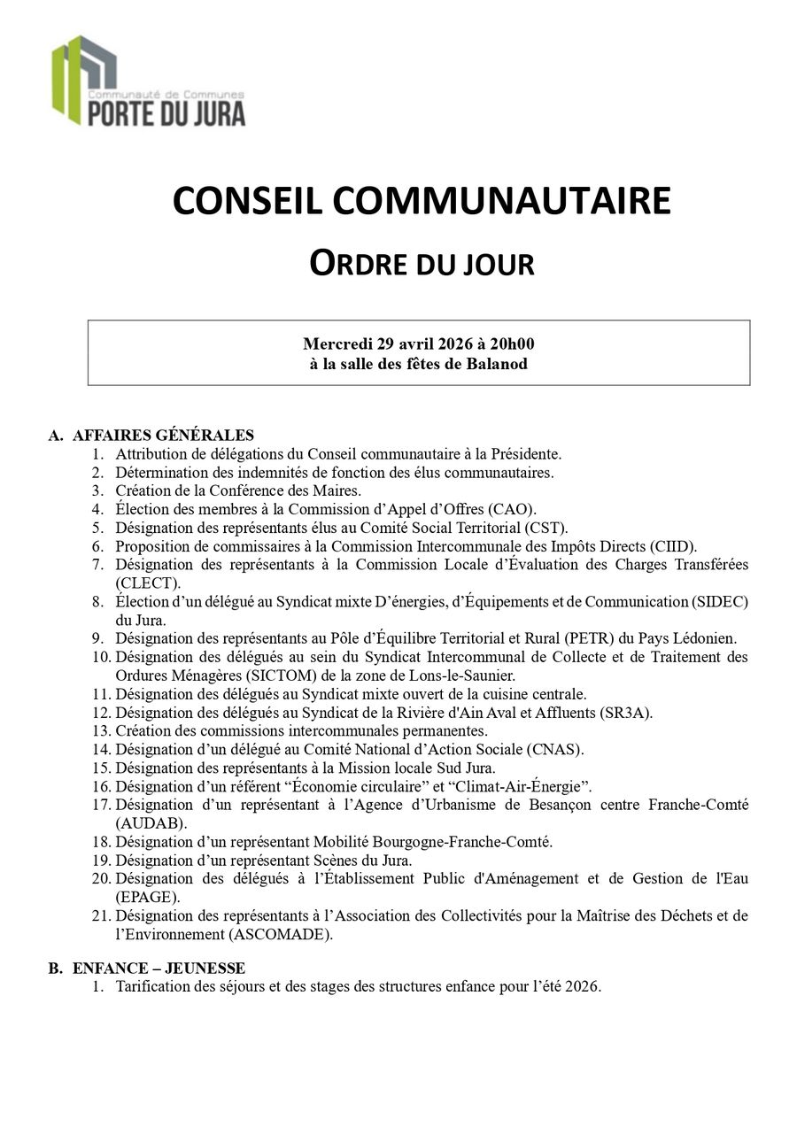 Le prochain conseil communautaire aura lieu ce mercredi 29 avril.