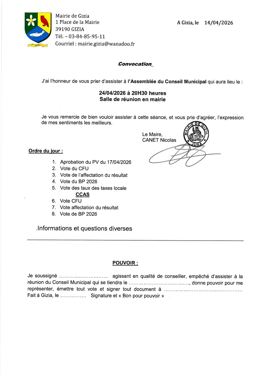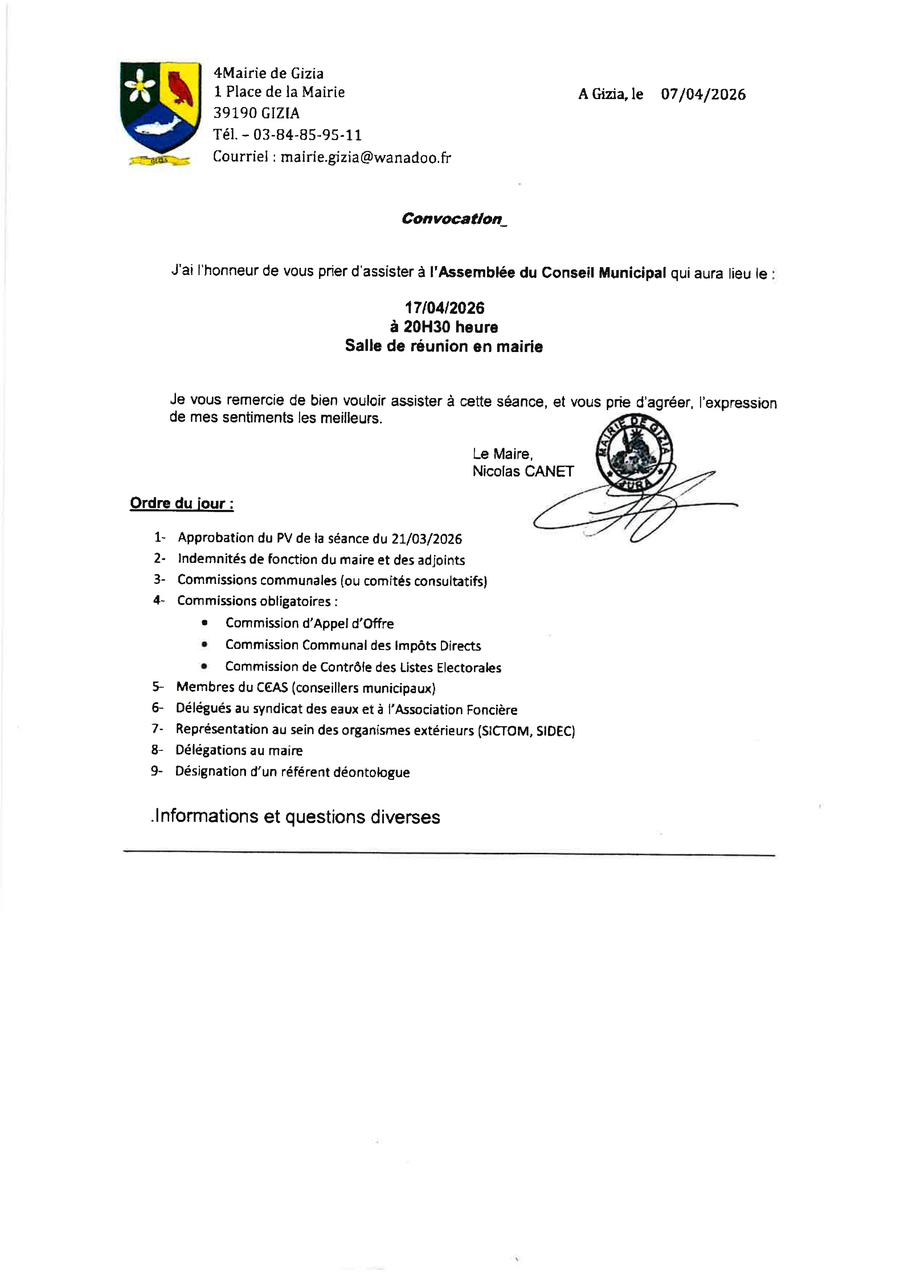 1 place de la Mairie 39190 Gizia