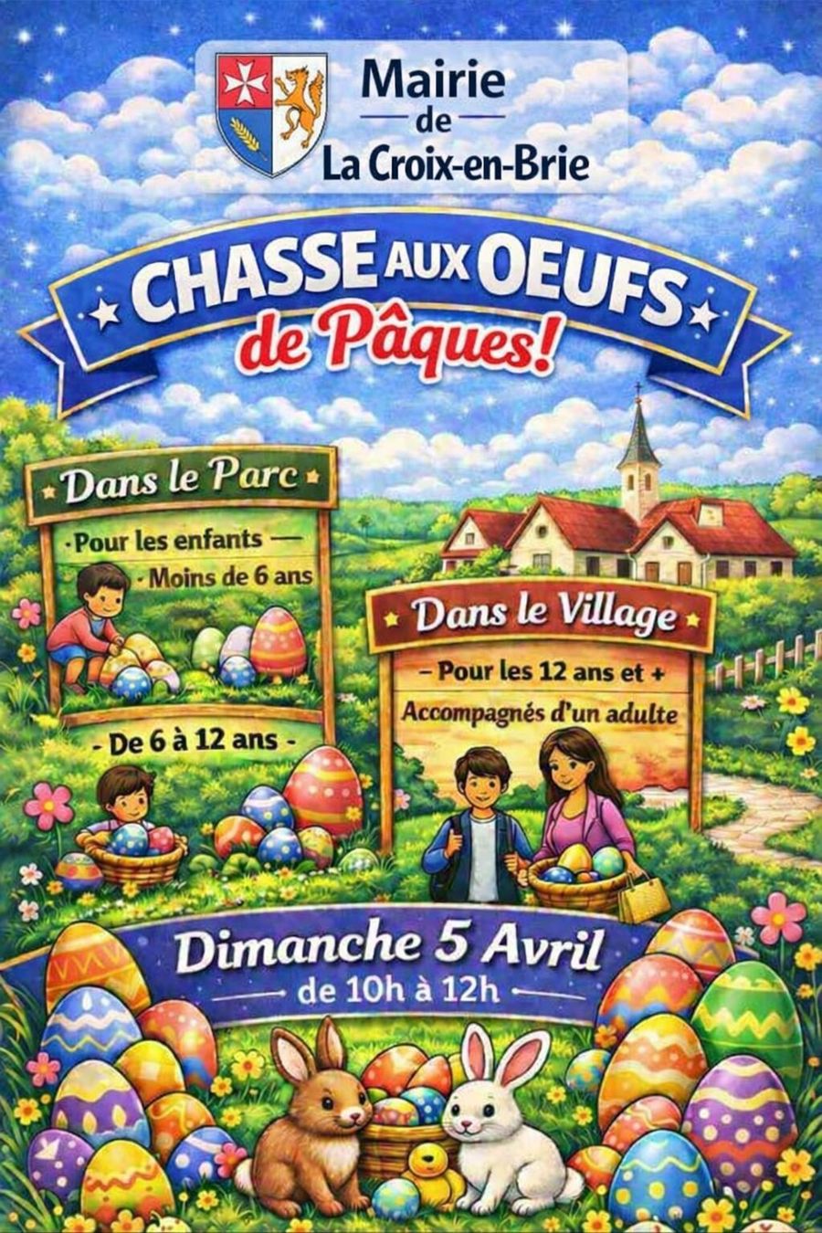 Les enfants partiront à la recherche des œufs cachés… surprises et chocolats garantis ! 🍫🐰