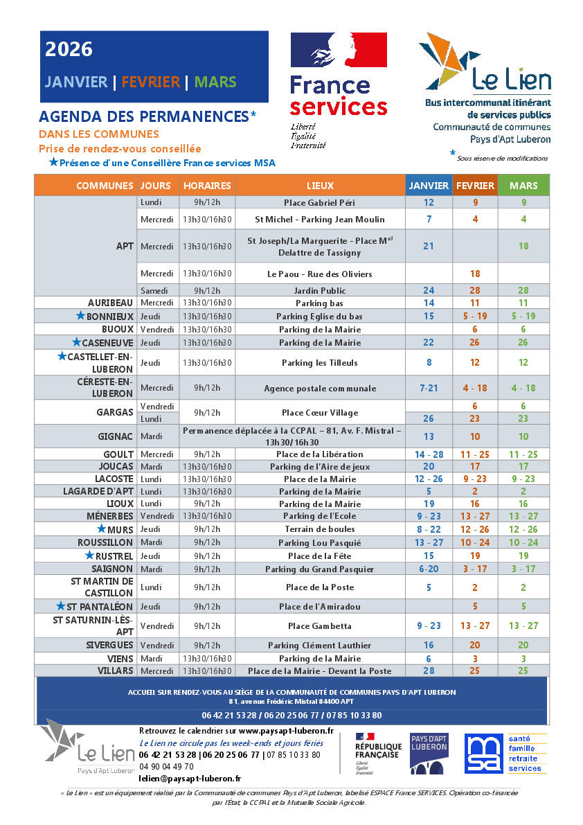 Le SIRTOM de la région d’Apt vous informe qu’il n’autorise pas la pratique des « tournées calendriers » par ses agents de collecte.