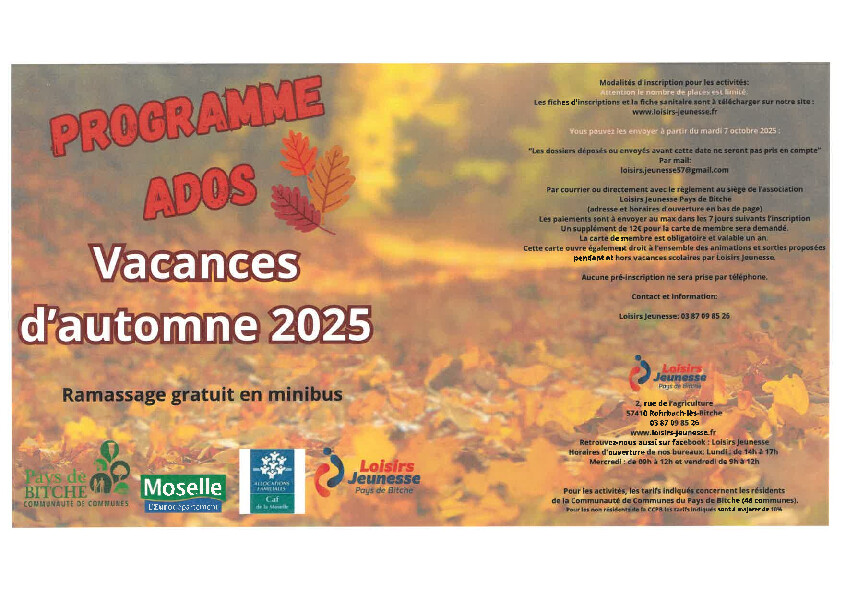 Programme des accueils de loisirs pour les enfants de 4 à 11 ans ainsi que pour les ados.