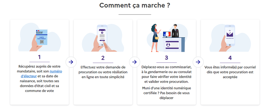 Vous aurez à présenter un titre d’identité et votre référence d’enregistrement "Maprocuration".