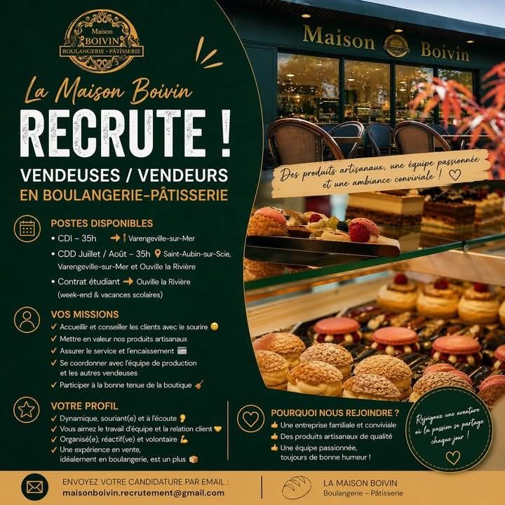 La Maison Boivin recrute pour l’été à Saint-Aubin-sur-Scie en CDD.