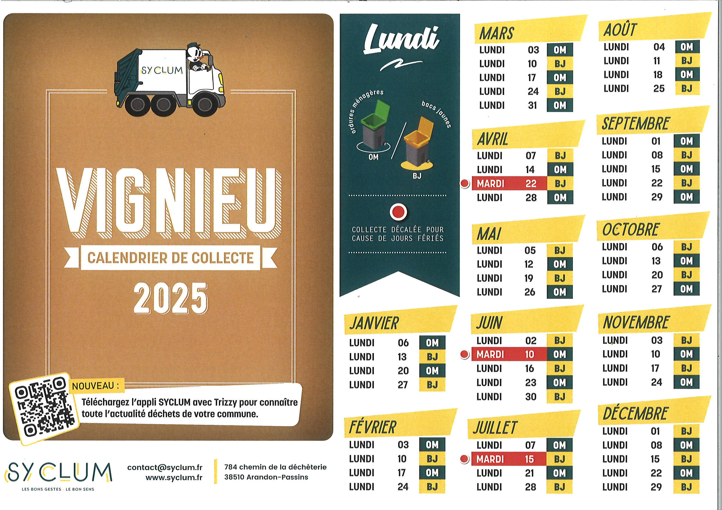 Nous invitons tous les usagers à consulter les calendriers de collecte de SYCLUM disponibles dans le lien ci-contre : https://syclum.fr/calendriers/