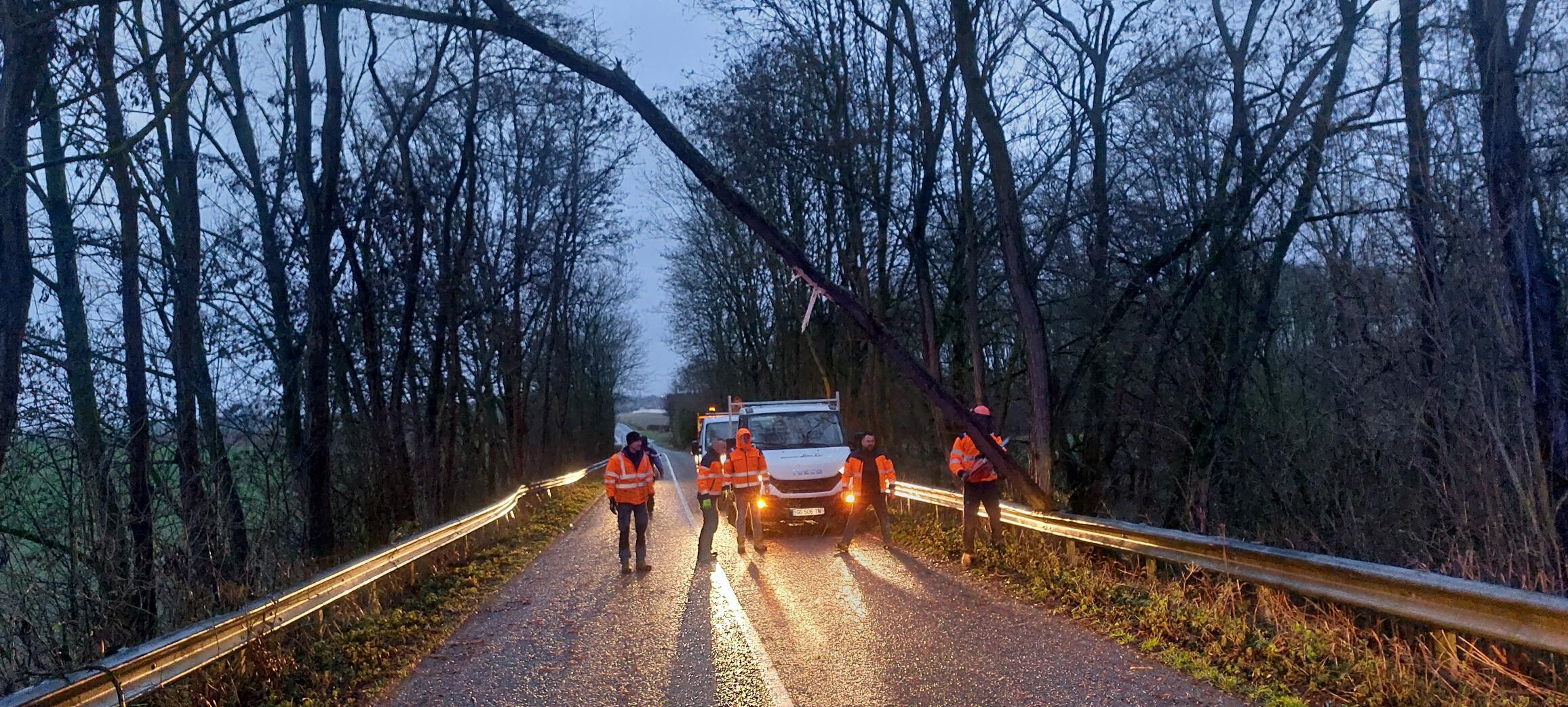 Il a déclenché l'astreinte communautaire pour une intervention en urgence, juste avant le pont vers Thélus, un arbre menaçant de tomber sur la voirie.