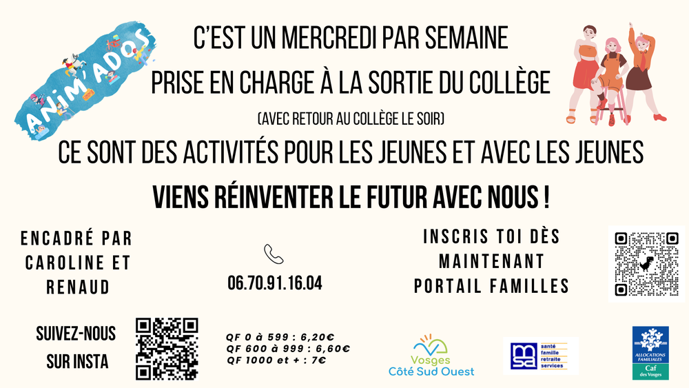 Retrouvez le programme Anim'Ados de février 2026 ci-dessous