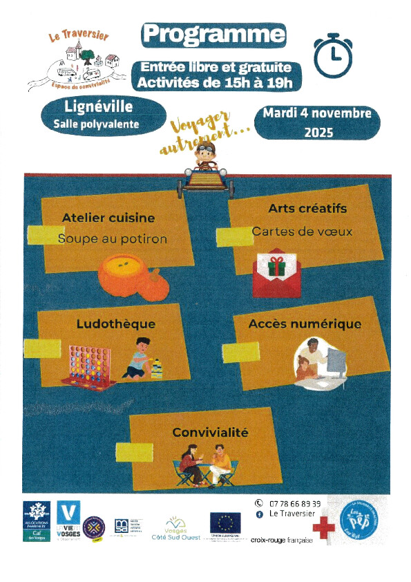✏️ jeudi 6 novembre, 16h > 17h, Le Traversier, salle polyvalente de REGNÉVELLE