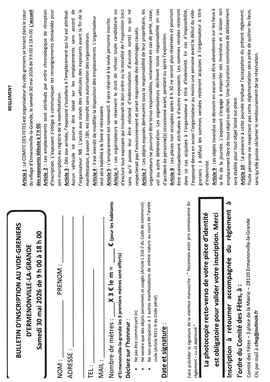 - votre mail pour l'envoi des billets