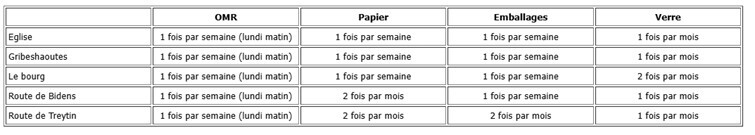 - les horaires des déchetteries avec les éléments autorisés / interdits