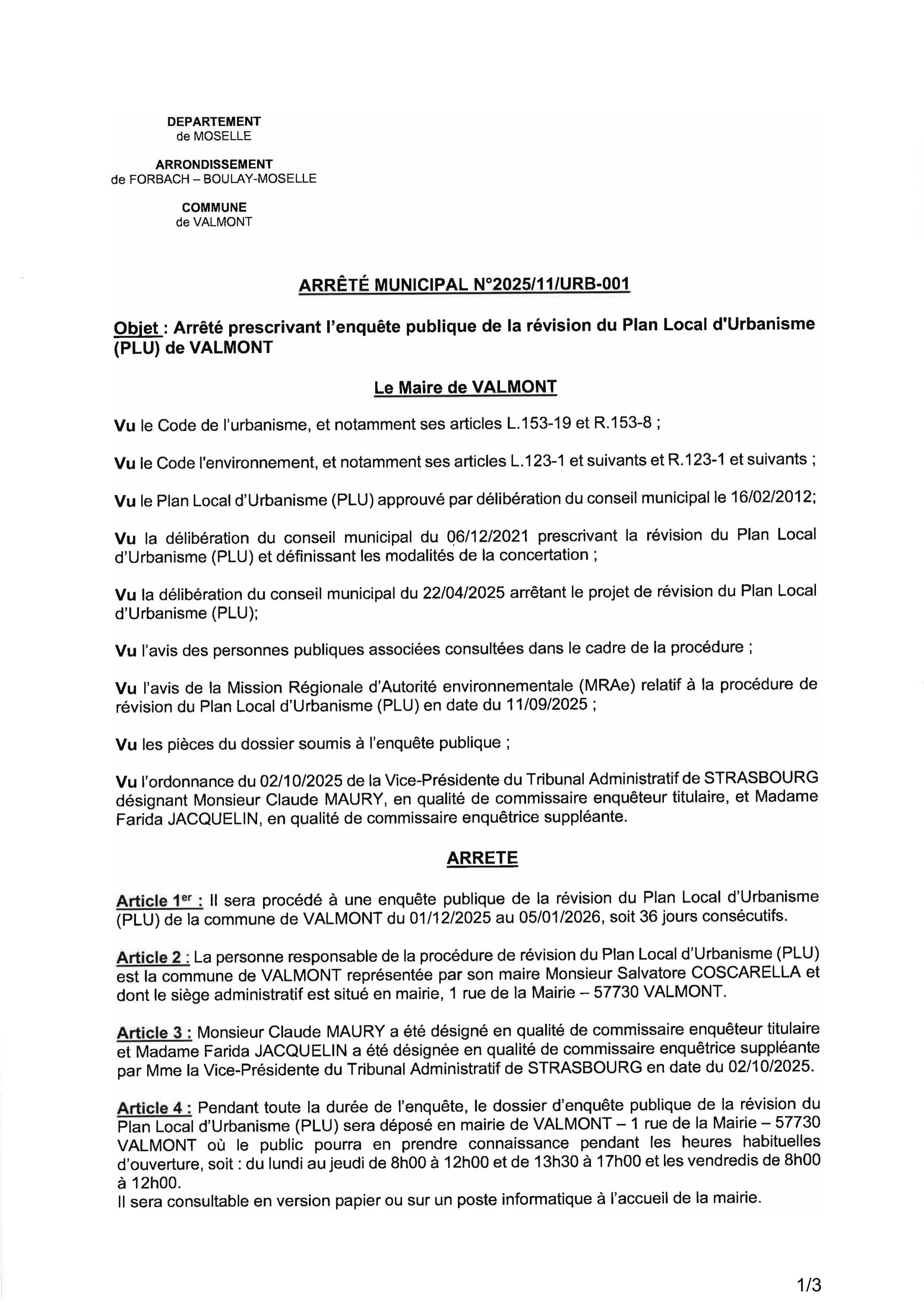La commune de Valmont lance la mise à l’enquête publique concernant la révision du PLU.